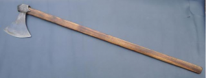 The picture above is a broad axe. It was a common tool among the Norse and other European peoples during the Middle Ages. Due to its large, broad blade, it was a favorite among many ancient people’s for ship building, timber cutting, and other associated trades and crafts. Its broad, heavy blade made it well suited to the task of chopping, cutting, and even shaping wood. These same characteristics made the broad axe a horrible choice for a weapon. Simply put, its head was much to big and heavy to be effectively used in battle. This would especially be true if someone needed two hands to wield it.